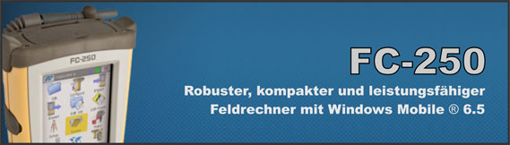 Der FC-250 Feldrechner liefert das Windows® Mobile 6.5 Betriebssystem auf einem klaren, hellen, farbigen Touchscreen-Display, welches Ihre Felddaten lebendig macht. Das leistungsstarke Betriebssystem kombiniert mit der Vielseitigkeit der verwendbaren Wechselmedien für die Datenspeicherung und -übertragung, leicht zugängliche, langlebige Akkus und dem kompakten und robusten Design machen den FC-250 zum perfekten Feldrechner für jeden Auftrag.